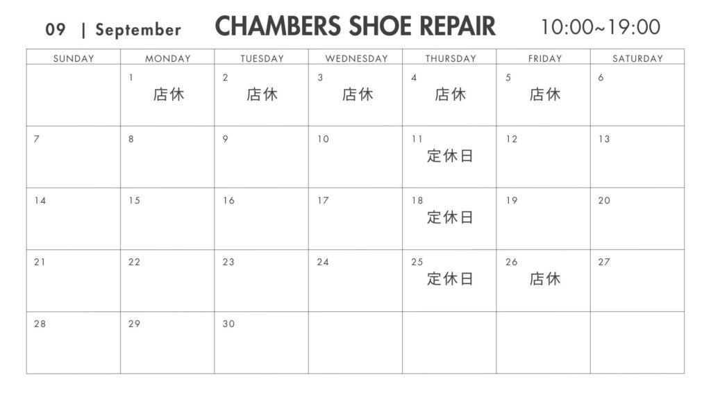 9月営業日のご案内